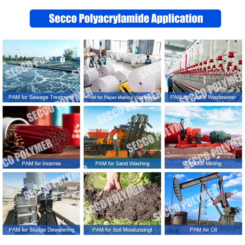 Полиакриламидная эмульсия широко используется в различных бытовых сточных водах, химических сточных водах, сточных водах нефтяных месторождений, обезводнении шлама, бумаге и других областях. Полиакриламидная эмульсия воды в масле также широко используется в городской очистке сточных вод, пивоваре, крахмальной фабрике, пищевых заводах и других очистках сточных вод. Особенно применимо удаление флокуляции органических суспендированных твердых веществ в кислотных или кислотных стоках. В бумажной промышленности он может использоваться в качестве фильтра, помогающего удерживать, очистки сточных вод для изготовления бумаги. Нефтяную промышленность можно использовать в качестве агента покрытия буровой эмульсии или обезжирения.